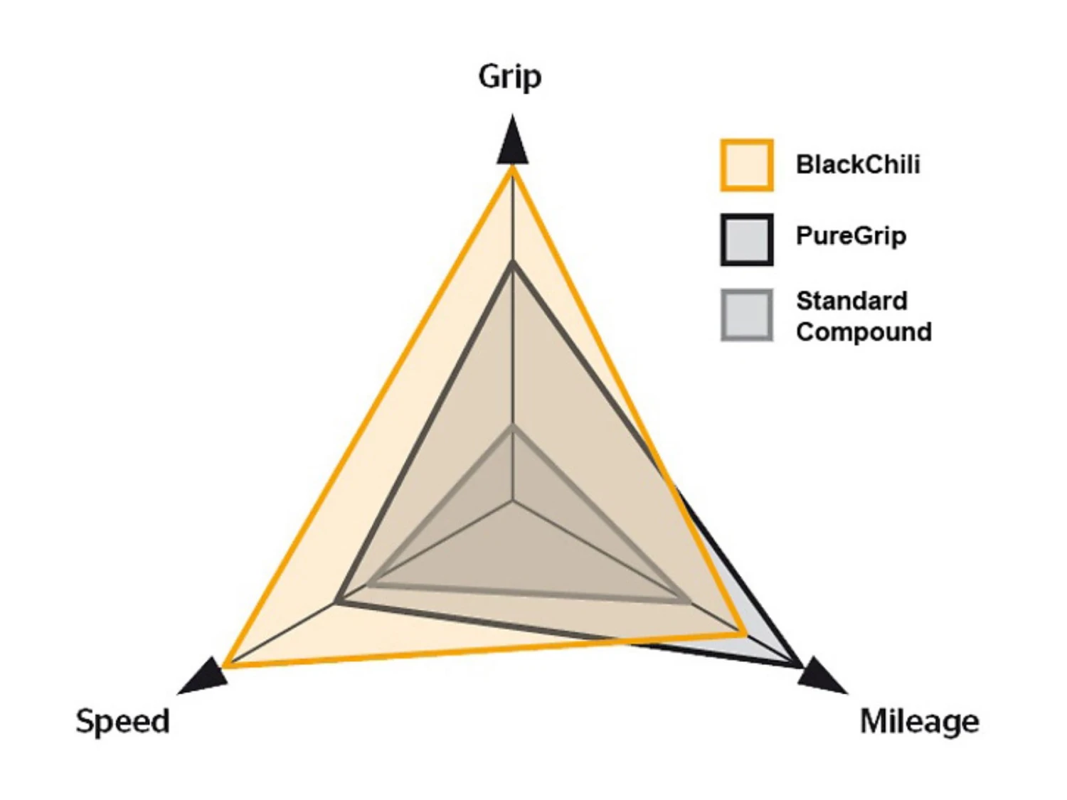 BlackChili Compound améliore de 26% la résistance au roulement et assure simultanément env. 30% d’adhérence en plus par rapport aux mélanges à base de silice activée.
