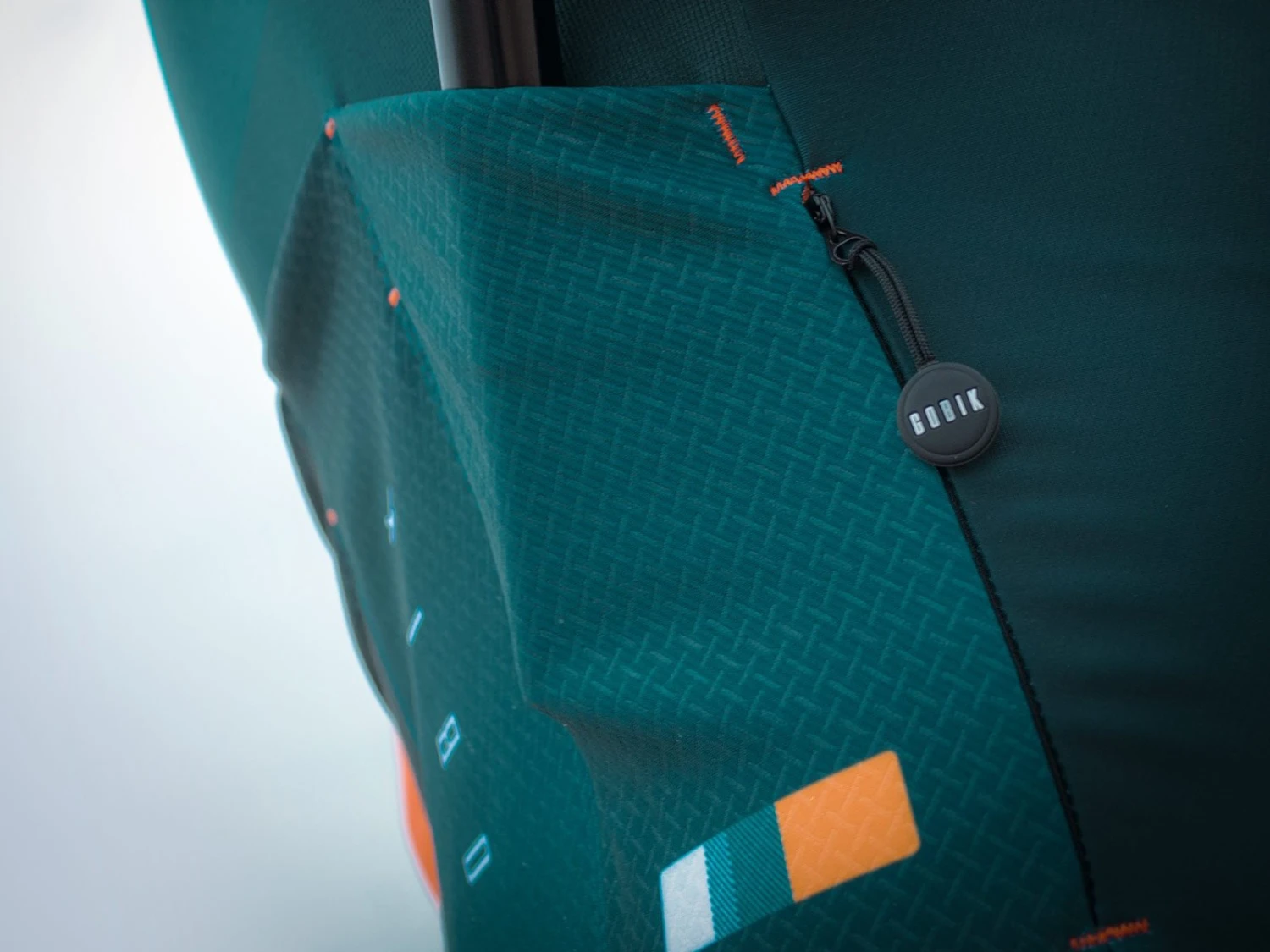 Afin d’améliorer l’ajustement et l’aérodynamisme, un nouveau tissu texturé a été ajouté aux poignets. Une autre nouveauté est l’incorporation de la fermeture éclair injectée qui la rend plus résistante.